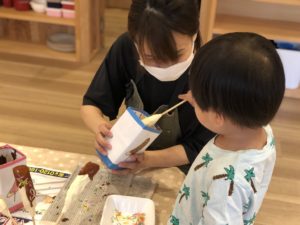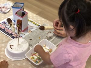 今日はお祭りの準備でチョコバナナ作りをしました!