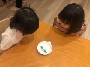 なんでお水に浮いてるんだろう?と不思議そうにしていました。