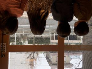 お外には行けないので、玄関から雪見をしました。