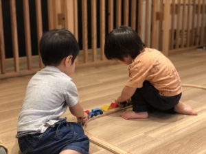 今日はあいにくのお天気なので、お部屋の中で遊んでいます。